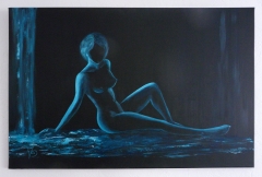 En 2004, retenue à la maison pour raisons de santé, je me mets à peindre tout d’abord sur des planches à découper en bois, puis petit à petit sur d’autres supports. Je m’essaie également à l’aquarelle grâce à l’aide précieuse de Maïté qui m’a beaucoup soutenue et surtout donné envie de continuer dans le domaine de la peinture.
